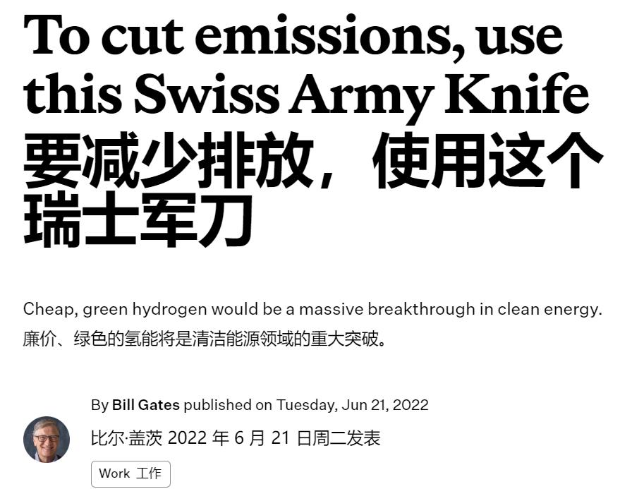 在三年前他曾发表过一篇《盖茨笔记》,认为氢燃料用途广泛,可以看作是清洁能源领域的“瑞士军刀”。