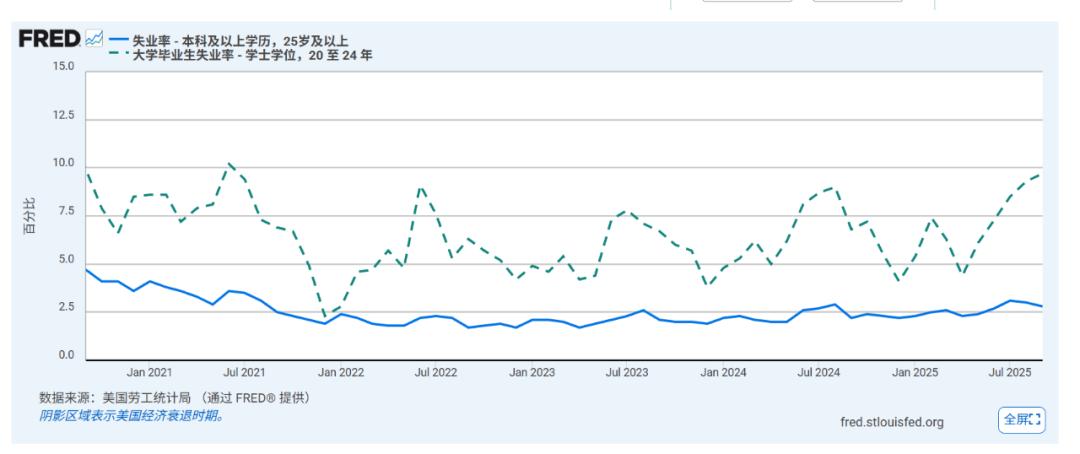 对于20-24岁大学毕业生群体,失业率更是攀升至惊人的9.2% ,比2022年低点高出70% 。