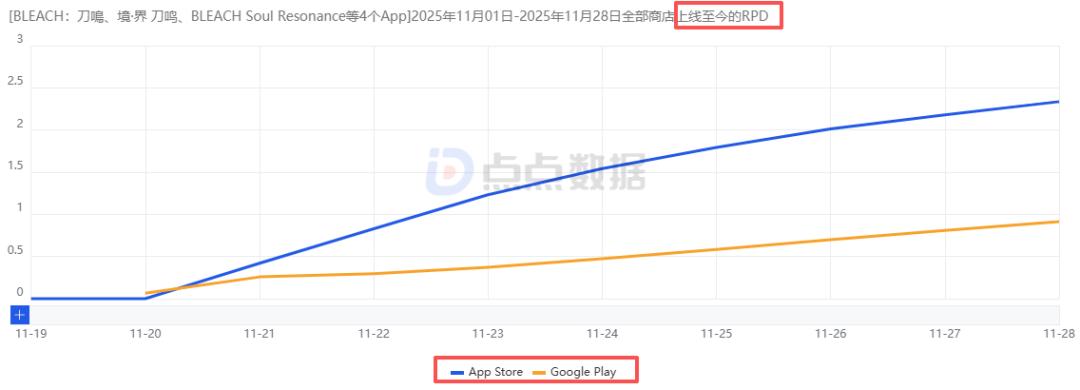 目前的RPD方面(单个下载收入),APP Store端约为16.54元,Google Play端为6.47元。