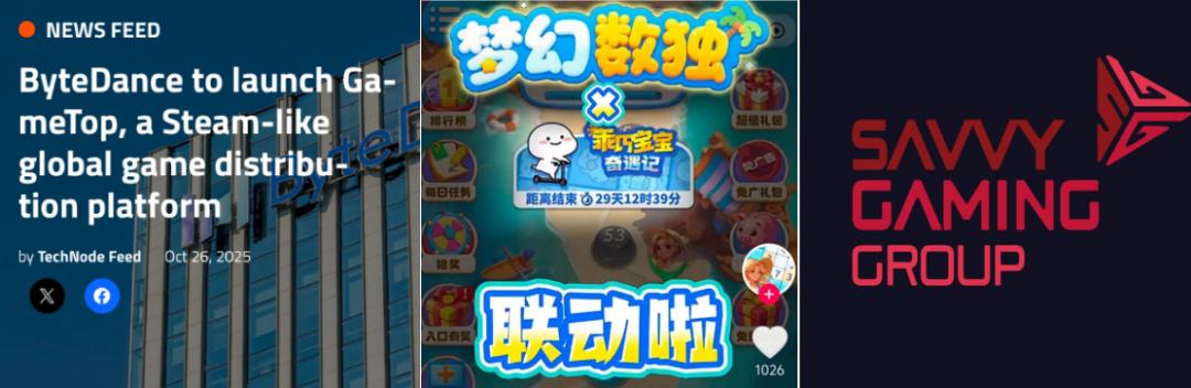 先是今年10月底,外媒technode报道称,字节计划在海外推出一个全新的游戏发行平台“GameTop”。该平台大概率为小游戏平台,类似海外的taptap或hago、weplay,致力于为海外用户提供个性化的游戏内容,同时满足玩家的创作与社交需求;再是11月中下旬曝出,抖音端加码广告小游戏布局,近期主推小游戏《梦幻数独》(今夏上线抖音),体验用户量已经破550万,相关话题词超1300万次播放;紧接着是上周传出的沙特游戏巨头Savvy Games Group正与字节就收购其全资子公司沐瞳科技进行谈判,但双方暂无对此进行回复。