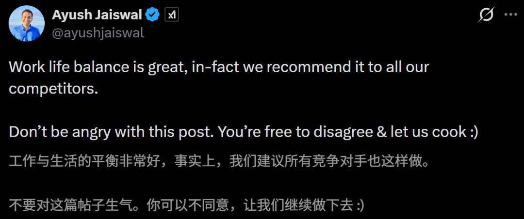 xAI工作节奏非常快,这可能是高强度工作文化的产物。