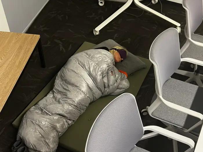 在马斯克接管后,Twitter前产品管理总监Esther Crawford,也曾发布过一张自己睡在公司地板上的照片。