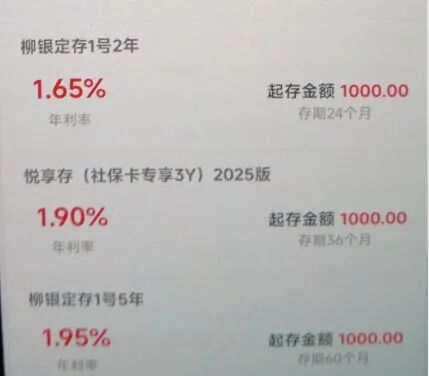 12月4日,柳州银行手机银行显示,目前该行已没有5年期大额存单在售,但可以购买其特色存款柳银定存1号5年期产品,1000元起存,年利率为1.95%,与该行3年期大额存单利率一致。