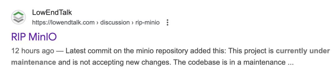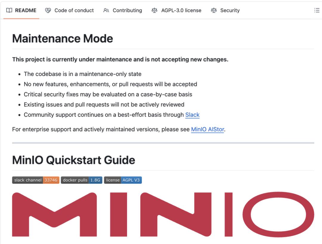 MinIO 宣布进入“维护模式”:意味着什么?
