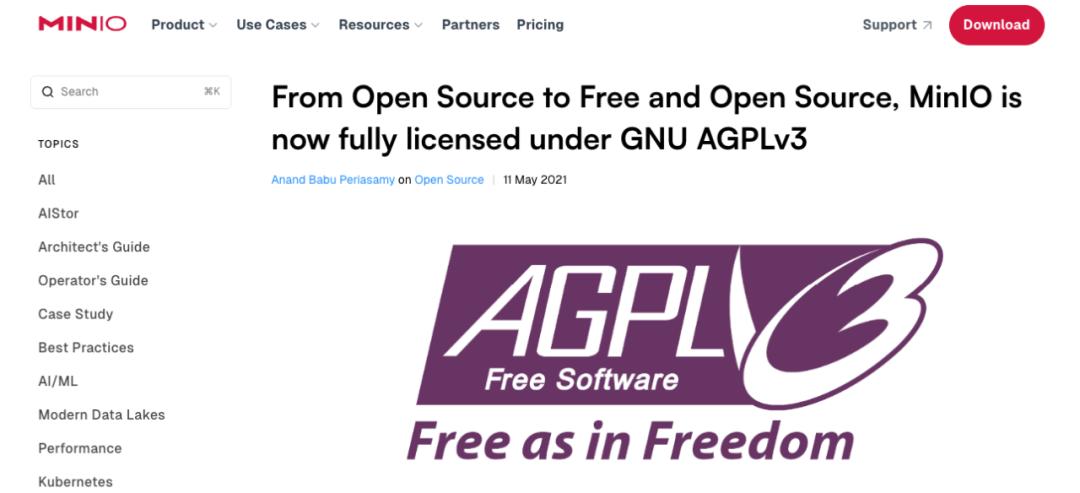 2019 年,MinIO 决定把开源协议改为 APGLv3,要求使用者在提供服务时必须开放自己的源代码。