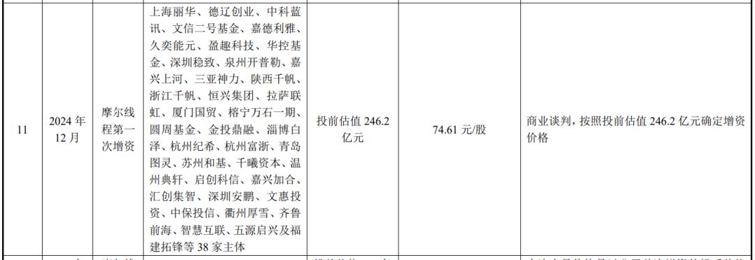图/摩尔线程IPO前最后一轮增资情况,来源/关于审核问询函的回复融中财经截图