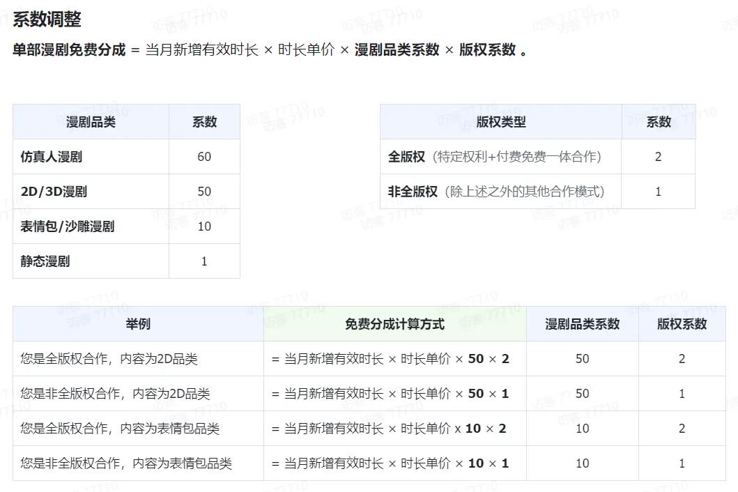 爱奇艺上线漫剧频道,推出漫剧合作计划,花式调整分账规则,独家新片会员激励分成最高可达100%,并为剧本合作方提供每部最高5万+的剧本费及播后定级奖励。腾讯广告开通“文娱-微短剧”类目,符合条件的内容方最高可享受95%分成,之后又推出“火星动漫”和“火星动漫社”两款漫剧小程序。