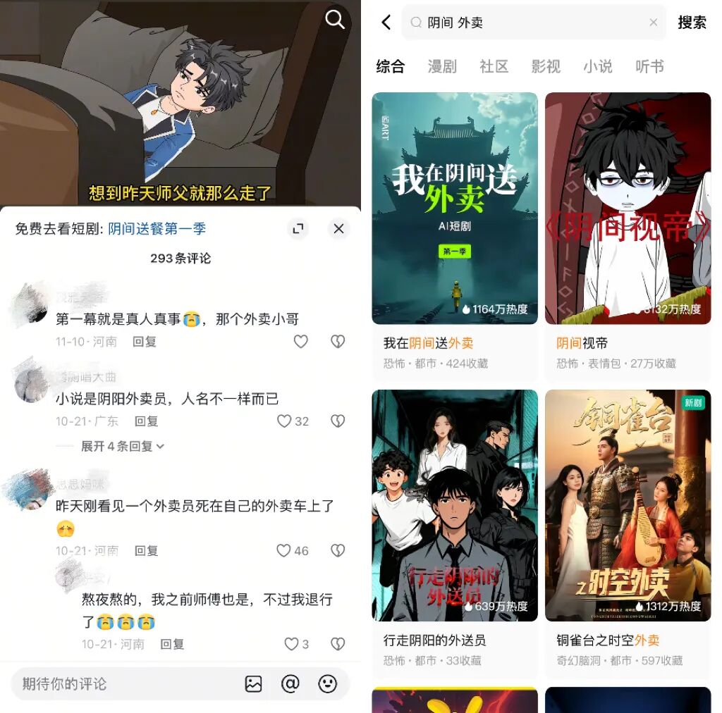 在漫剧的评论区或者盘点里,重点永远是癫爽的情节,对画风与制作的讨论延展性很低。在影视、动漫甚至游戏领域都容易引发争议的AI,在这里丝毫不成问题。