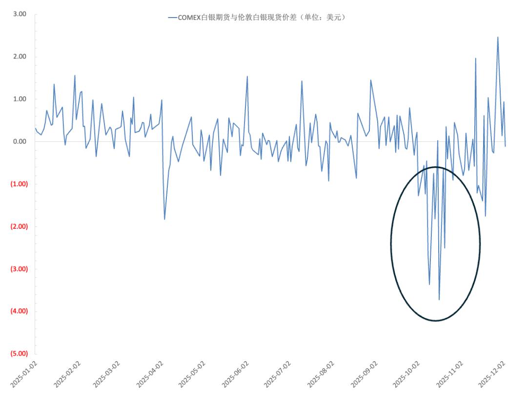 更重要的是,白银供应危机还引发了伦敦白银现货和COMEX白银期货价差的剧烈波动。通常,COMEX期货价格较伦敦现货仅溢价几十美分;然而,在10月10日,出现了COMEX期货价对伦敦现货价贴水超过3美元/盎司的罕见现象。