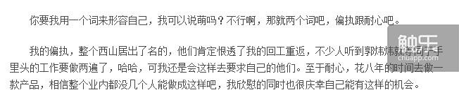 刘成则认为:“郭炜炜面对产品很认真,也很有决断力,他认定的事情,大家就要去做。”——这与郭炜炜曾对自己的评价部分相似:偏执与耐心。“如果决策正确,那就是优点了。”