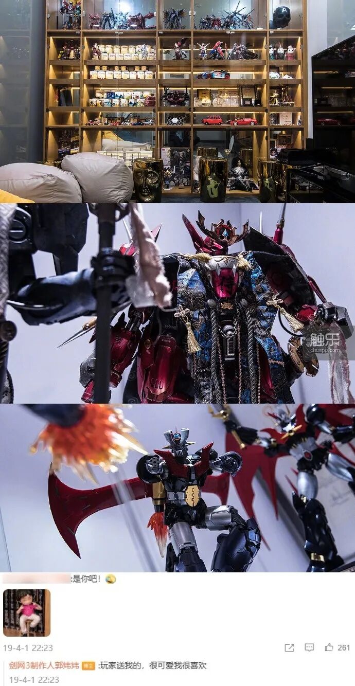 模型爱好者彼此会以“胶佬”相称,这个词的指的是“拼装塑胶玩具的人”。拼装模型的价格并不算昂贵,但需要付出大量时间和耐心手工制作。从这个角度看,郭炜炜就是一个胶佬,而胶佬总是喜欢把自己亲手制作的模型展示给大家。2024年线下试玩会的时候,很多人在金山软件园最高的9号楼、《解限机》开发团队“薪火重工”所在办公区看到了大量机甲模型。郭炜炜也将部分藏品移至更加敞亮的展示柜中。