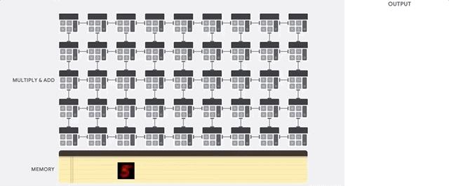 核心思路,是专门对 AI 最常用的矩阵乘法做优化,搞了一个叫 “ 脉动阵列 ” 的方法。