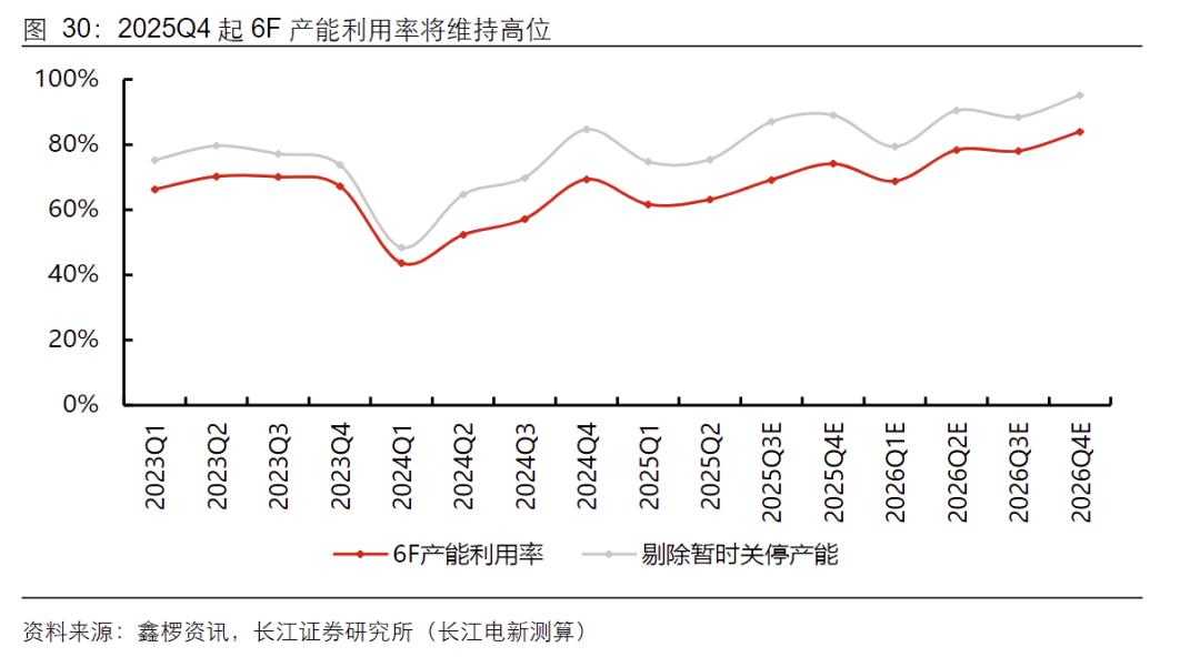 展望2026年,虽部分建成未投产产能及关停产能复产将释放一定供给弹性,但全年6F需求增量预计达8-9万吨,足以消化新增供给,且6F扩产周期长达1.5年,行业紧缺格局有望延续至2027年。