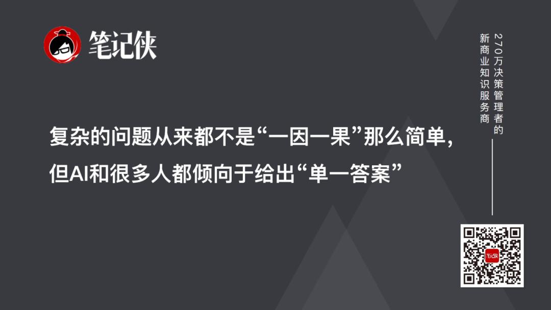 复杂的问题从来都不是“一因一果”那么简单。但AI和很多人都倾向于给出“单一答案”,这种做法很容易导致我们对问题的认知出现偏差。