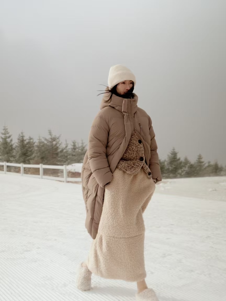 该系列从“人类滑雪起源地”阿勒泰的雪山肌理与自然光影中汲取设计灵感,将山峦线条、朝霞暮色等元素化为设计语言,使服饰本身成为连接穿着者与壮丽雪境的温暖媒介。这种从功能性到审美性的全面考量,正是坦博尔倡导的户外精神:滑雪服饰不仅是专业御寒的科技防护,更是冰雪经济高质量发展的推动者。