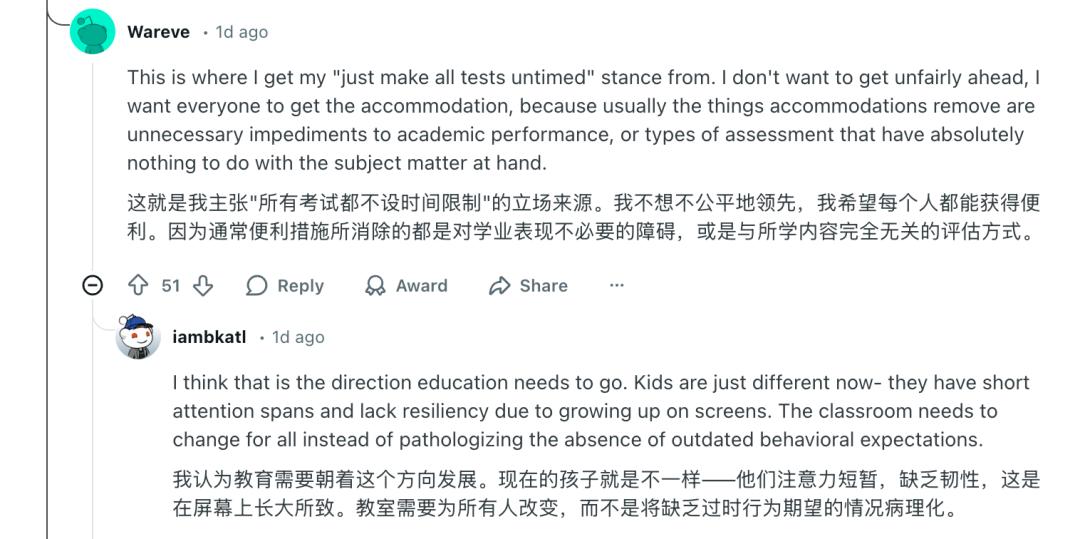 诚然,高校建立残疾保护机制,以及放宽诊断标准,初衷是正向的:希望让真正有学习障碍的学生,能够享有平等受教育的机会。