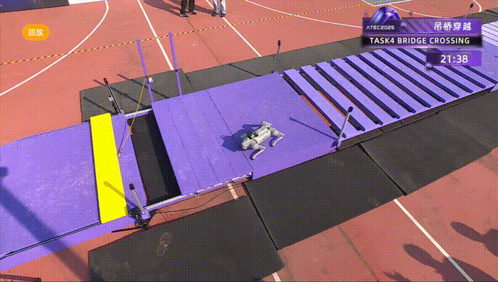 另一边,IRMV战队四足机器人站在吊桥起点,蓄势待发。