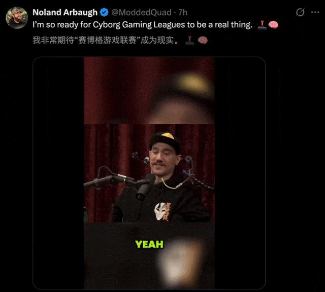 首位接入Neuralink患者Noland Arbaugh表示,期待未来有天,「赛博格(Cyborg)游戏联赛」成为现实。