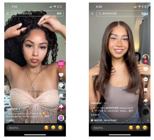 作为一家在海外线上市场表现突出的中国假发品牌,ISEE HAIR 正以其独特的产品理念持续赢得海外消费者青睐。ISEE HAIR 通过创新驱动发展女性真人发和无胶假发品牌,以“重新定义轻松之美”为愿景,通过持续的产品突破推动行业变革。在2023年10月,ISEE HAIR 在 TikTok 的周 GMV 曾高达30万美金,并登顶相关榜单。