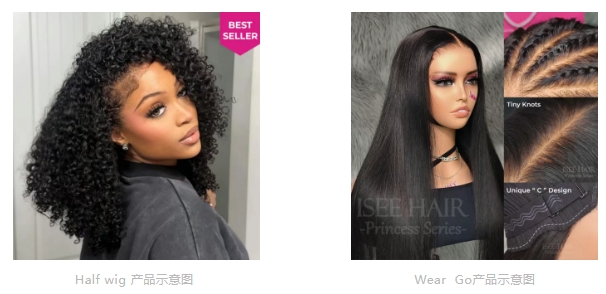 基于这些洞察,ISEE HAIR 推出了 Half wig 产品,满足英国年轻消费者在追求造型自由的同时希望保留个性与自然感的需求。此外还推出 Wear Go 无胶头套产品,通过预剪蕾丝与头型优化设计,实现“即戴即走”,极大提升了使用便捷度与舒适体验。