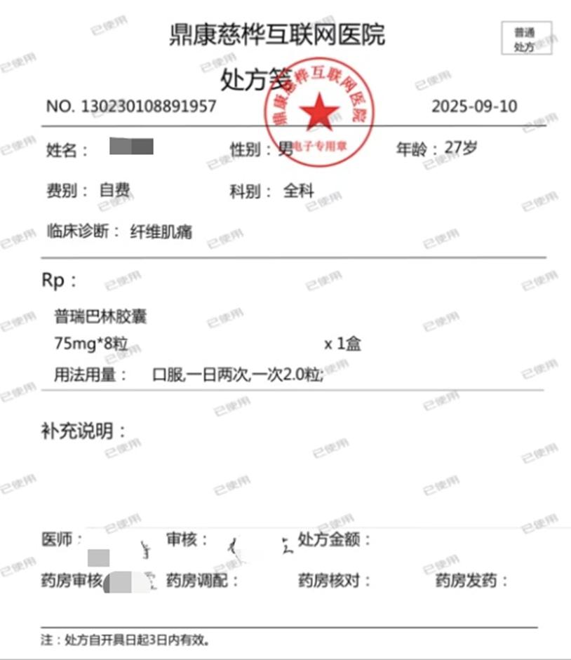 但这并非个案。临床医生发现,越来越多的药物成瘾者,尤其是青少年,正通过网络购买普瑞巴林。而线上药店无需真实病历即可开处方,让这款处方药轻易流入滥用群体手中。