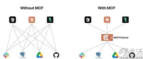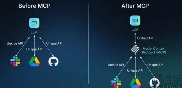 MCP想要解决的是不同厂商AI产品各自为政、各行其是的混乱局面,并导致AI模型与外部工具交互成为一件复杂、且不稳定的事情。彼时基于不同模型的智能体(AI Agent)想要变得有用,就需要为不同的功能编写单独的API,但不同智能体使用的“语言”都不一样。