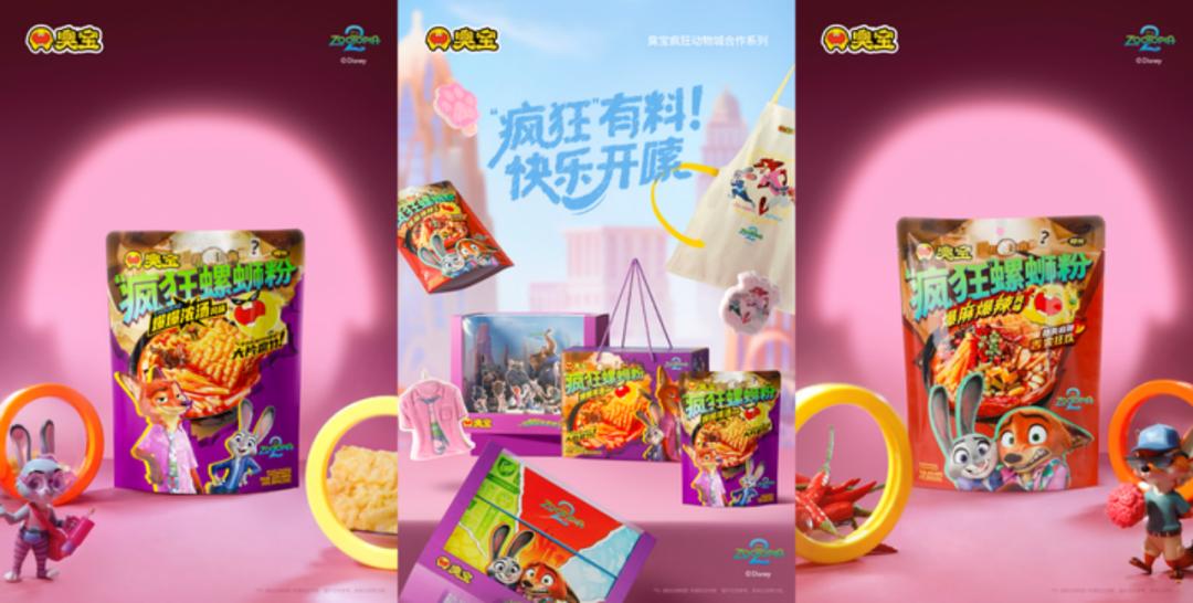 其次,这次合作产品“疯狂”螺蛳粉在视觉的呈现就给人带来了耳目一新的感觉,狐狸尼克·怀尔德和兔子朱迪·霍普斯与臭宝品牌经典元素巧妙融合,鲜明的色彩对比既保留了品牌辨识度,又以全新的IP合作为大家带来了惊喜感和新鲜感。