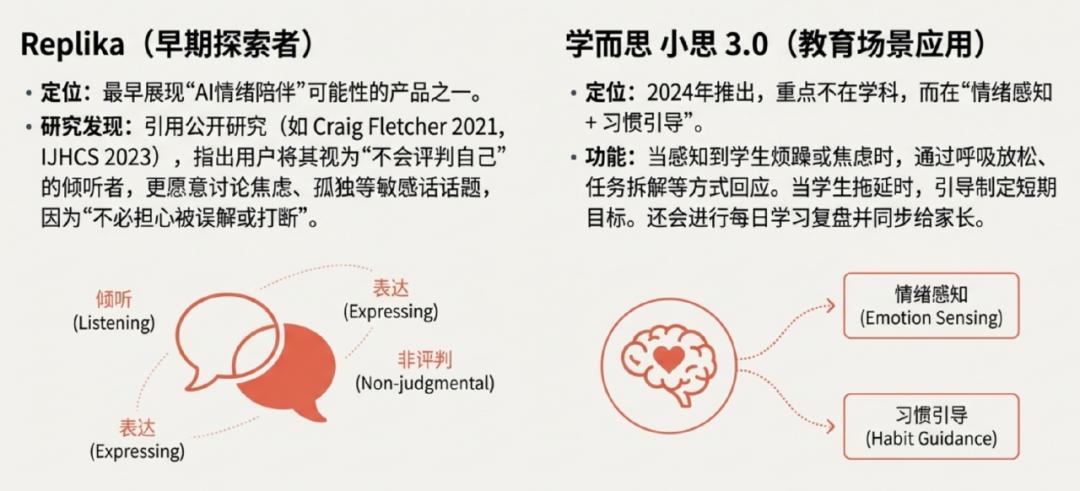 学习并不是纯粹的认知过程。情绪、动机与自我效能往往决定学习的持续性,尤其在高压力教育环境中,这些因素对学生影响更为显著。长期以来,教育系统在学科知识之外的情绪支持常常不足,辅导关系也难以覆盖所有学生。AI 学习伙伴的出现,使这一环节第一次可以规模化触达。