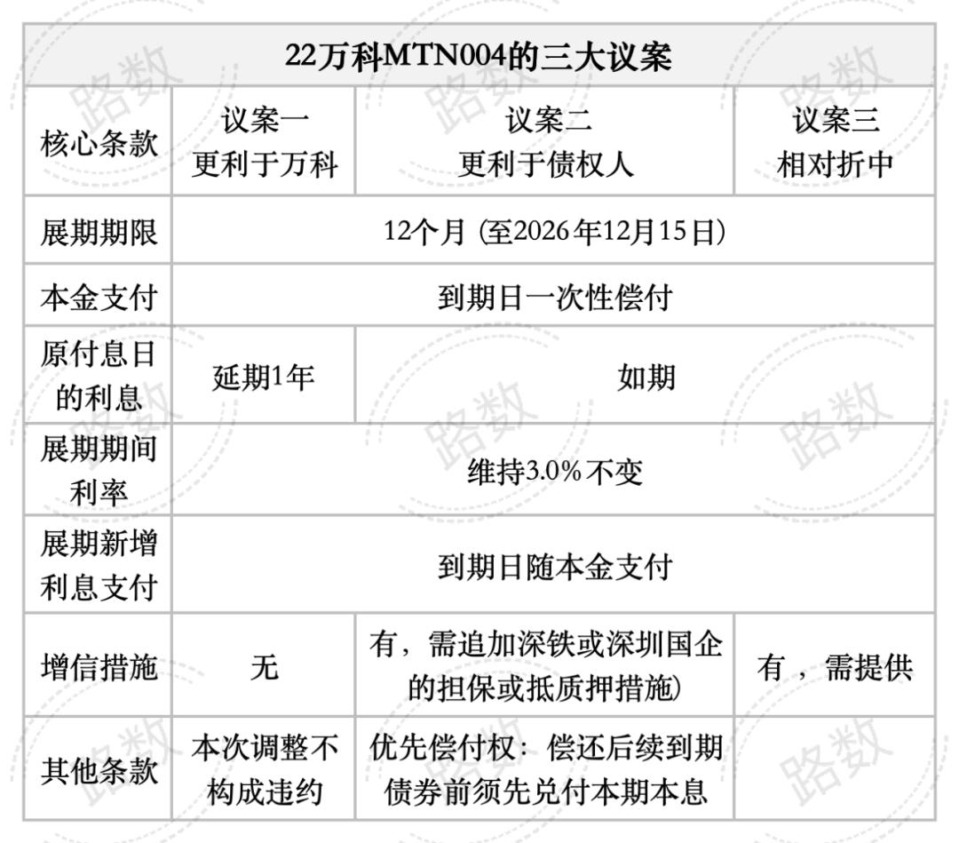 说白了,一部分债权人并不相信展期后万科能按时还钱。所以得加点“保险”——比如要求增加担保、附加条款、偿还后续到期的债券前要先兑付本期债券。