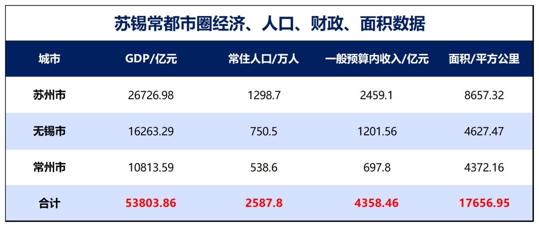 2024年,苏锡常都市圈的GDP合计5.38万亿元,若参与当下已获批的国家级都市圈排名,可以排到全国第三,仅次于深圳都市圈、南京都市圈。