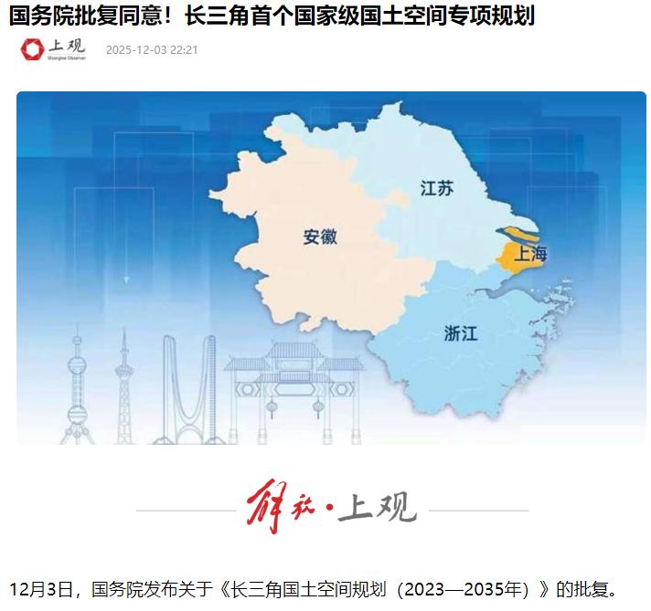 12月3日,国务 院批复了《长三角国土空间规划(2023—2035年)》。