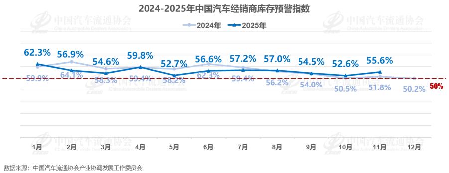 渠道端的寒意也很明显,11月汽车经销商库存预警指数飙升至55.6%的年内高点,全国库存总量超330万辆,43.6%的经销商出现15%以上的价格倒挂,卖一辆车亏一辆,已成为不少中小经销商的常态。这种“生产端忙、数据端美、零售端冷”的反差,更印证了车市提前入冬的现实。