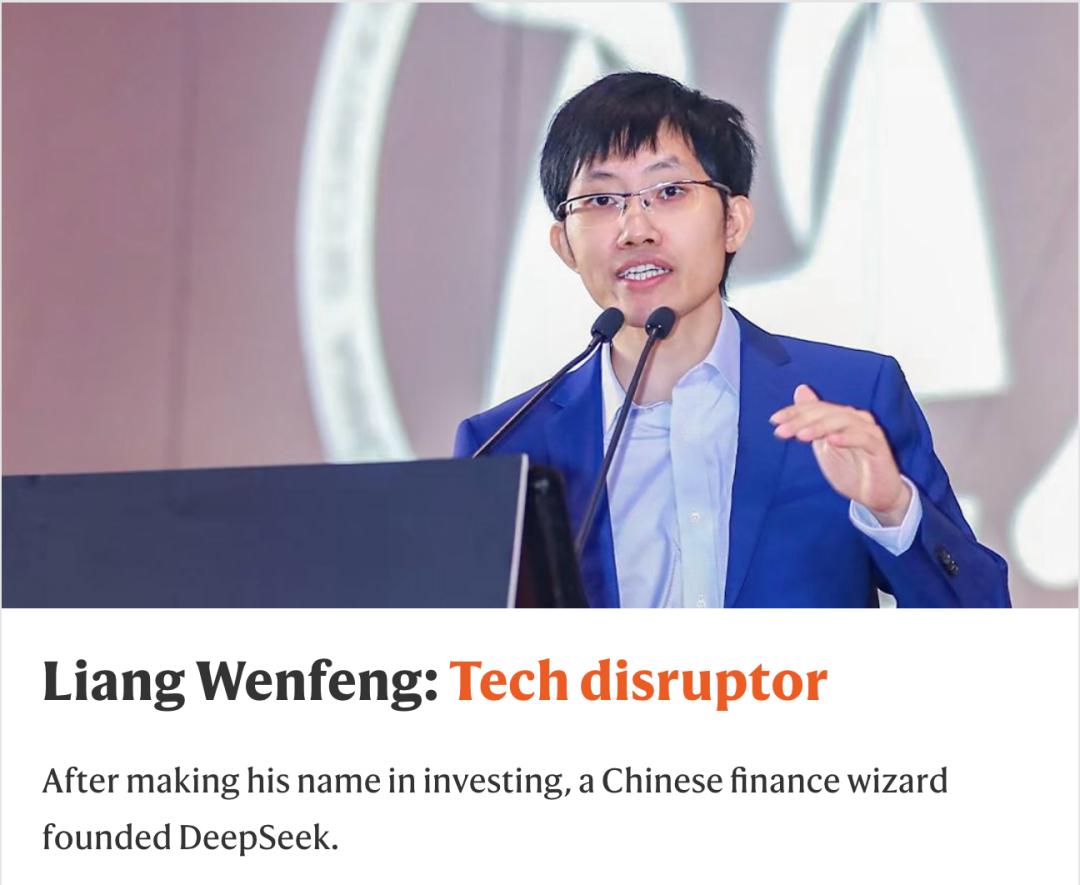 在这份榜单中,梁文锋被誉为「科技颠覆者」。《自然》称他创立的中国人工智能企业开发出DeepSeek大语言模型「震惊了世界」,「这一开源模型对科学家们来说无疑是一大福音」。