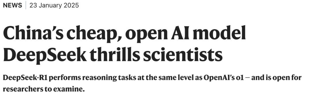 DeepSeek公司突然发布了功能强大但价格低廉的R1模型——瞬间证明美国在人工智能领域的领先优势并不像许多专家想象的那样巨大。