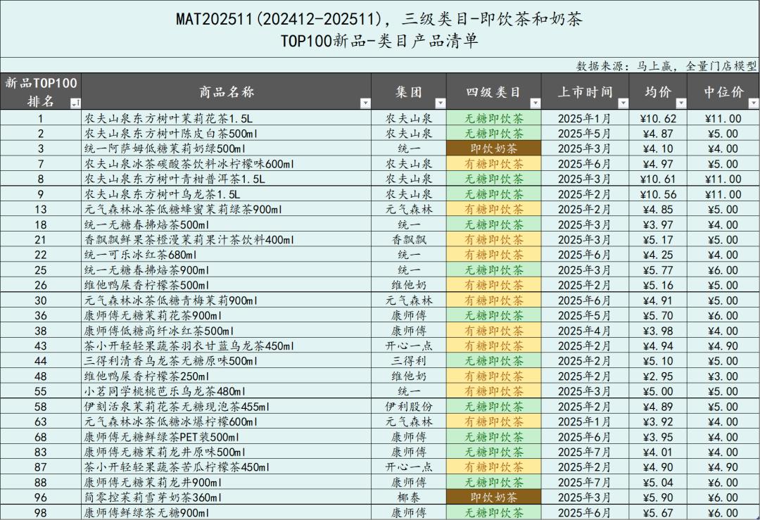 2025饮料新品TOP100丨元气森林、农夫山泉、康师傅、统一激战新品、乳饮退潮谁来补位?