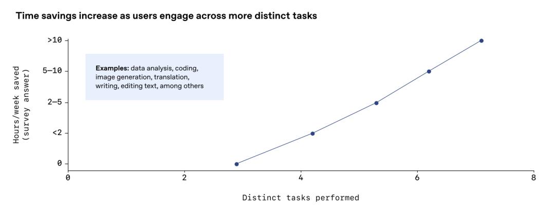 数据还显示,涉及约7种不同任务类型的用户,其节省的时间是仅涉及4种任务用户的5倍。