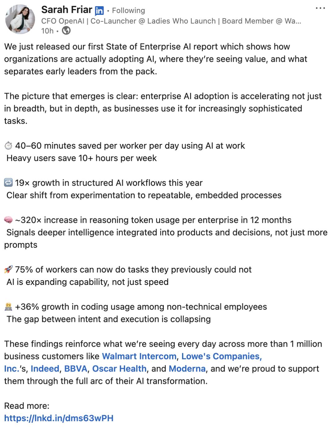 这句话的潜台词很清晰:要撑起这笔钱,企业客户的增长,已经是OpenAI商业模式的关键支点。