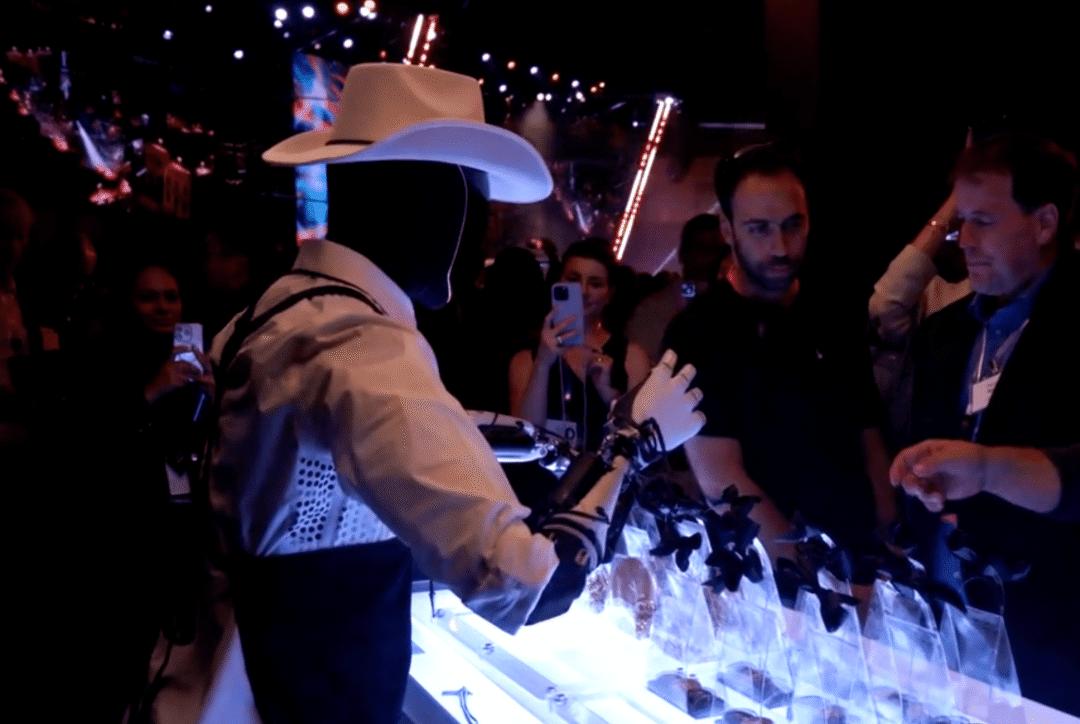 多台 Optimus 以牛仔造型现身,给来宾端饮料、陪观众玩投球游戏、还能和人对话。但会后曝光显示,这些机器人的对话和动作主要由幕后工程师远程遥控辅助完成,而特斯拉并没有主动说明这一点。