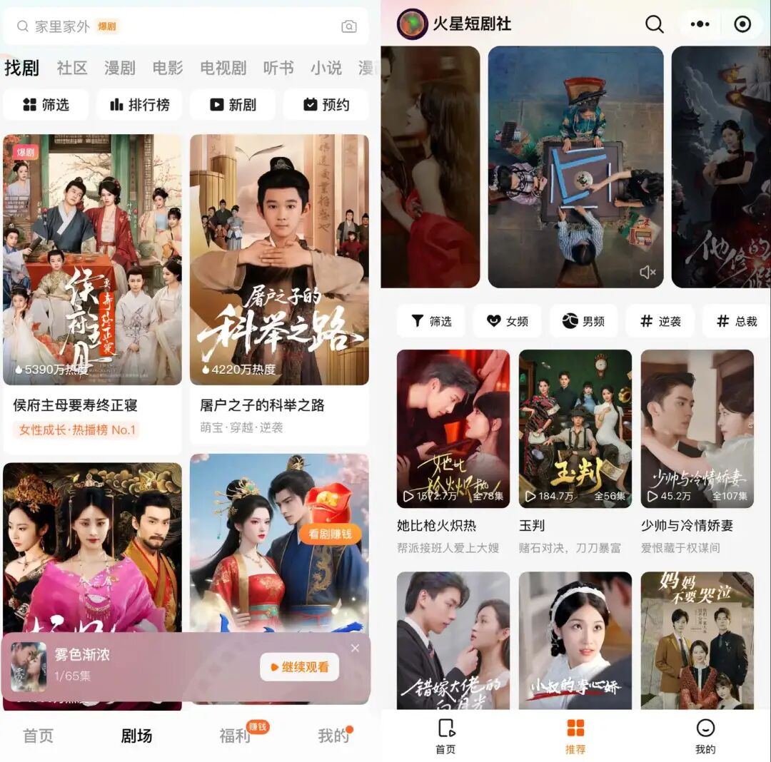 图:红果APP、火星短剧社小程序首页来源:《听筒Tech》截图