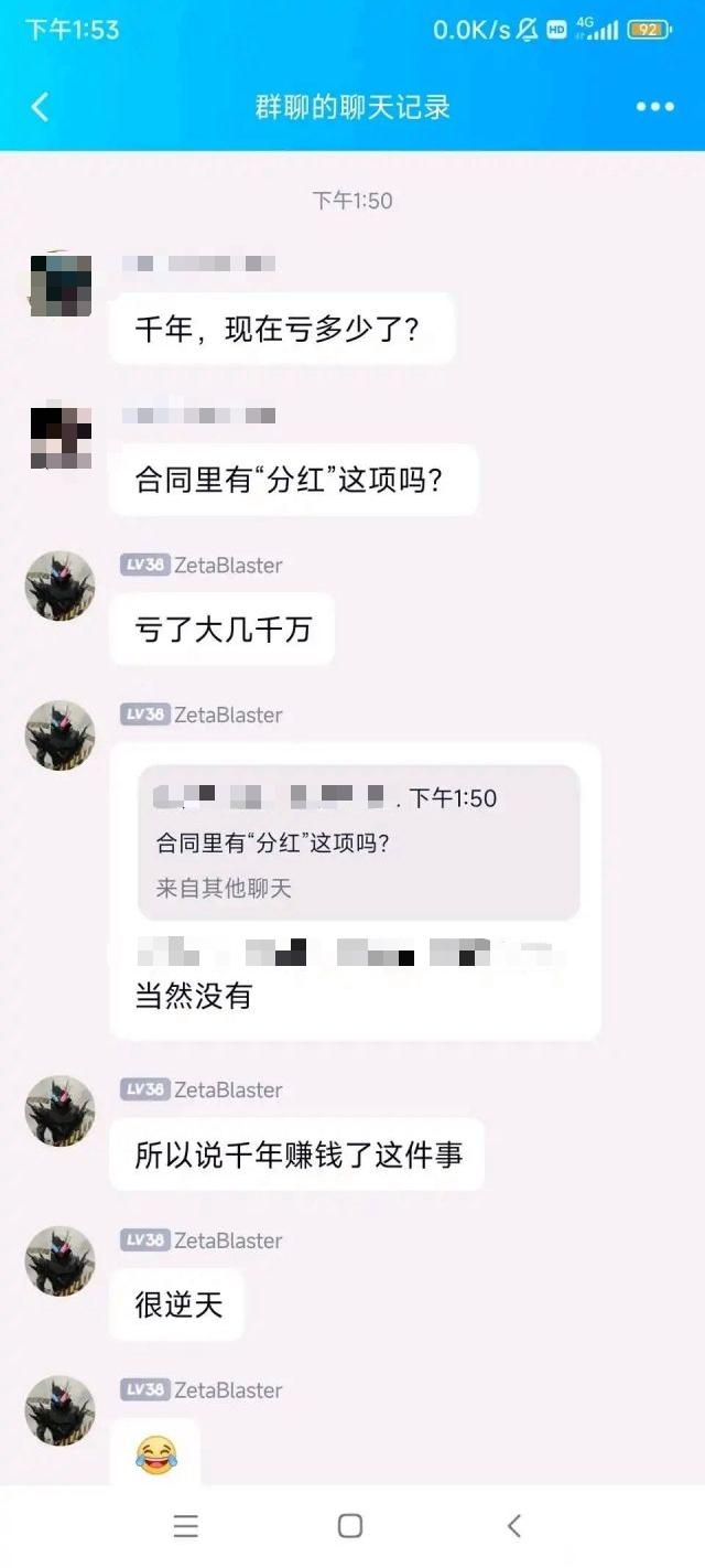 (图中的ZetaBlaster即吴浩宇网名,他曾在群聊中表示千年亏了几千万)