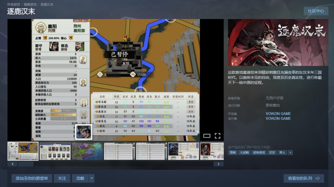 值得注意的是,吴浩宇在游戏上的创业似乎还在继续,他名下的另一家公司,上海花霆网络旗下的单机产品《逐鹿汉末》此前已经在Steam上发布了demo。