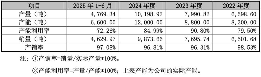 其部分产线于2023年第四季度投产,产能尚处于爬坡阶段,因此2024年及2025年1-6月产能利用率有所下降。
