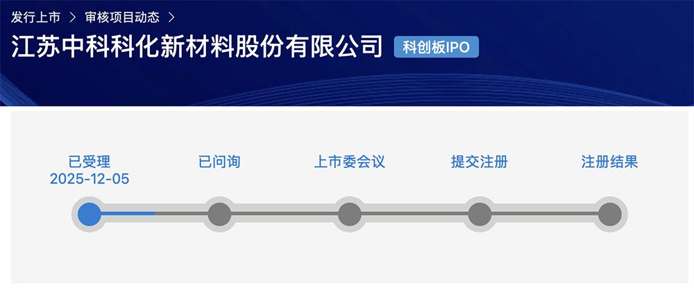 12月5日,江苏半导体封装材料企业中科科化科创板IPO获受理。