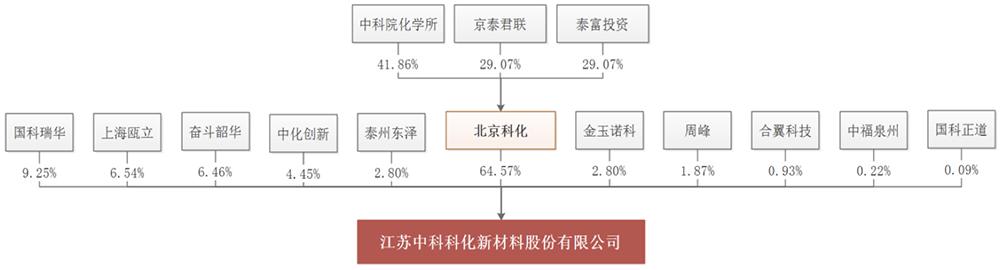 截至招股书签署日,北京科化持有中科科化64.57%的股份。北京科化的股权结构为:中科院化学所持股41.86%、泰富投资持股29.07%、京泰君联持股 29.07%。