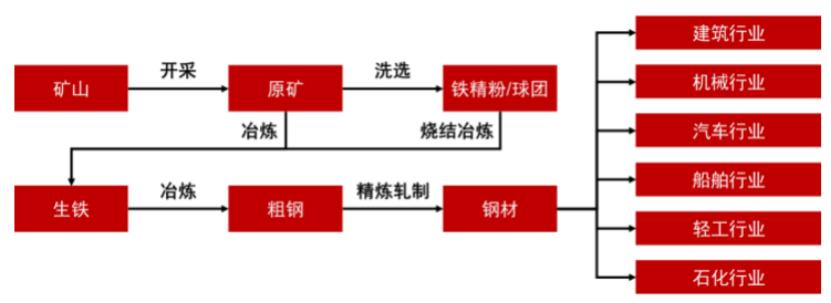 马矿股份所处的铁矿石采选行业,处于钢铁产业上游,铁矿石采选产品铁精粉是生产钢铁的原材料,钢材应用于建筑、机械、汽车、船舶等领域。