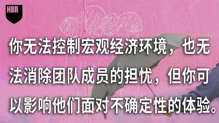 当未来充满不确定性时,人们常常会往最坏的情况去想。帮助团队集中注意力,把目光聚焦在当下可控的事情上,并共同制定下一步计划。小小的共同行动,能够营造出团结感并推动事情取得进展,进而驱散四处弥漫的担忧情绪。