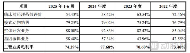 此外,过去几年间,百奥赛图的毛利率较同行平均水平更高,并持续走高。在行业毛利率增长乏力,甚至出现负增长的2023年与2024年之交,百奥赛图仍大幅提升毛利率。这背后,主要是由于差异化地开展了抗体开发业务。