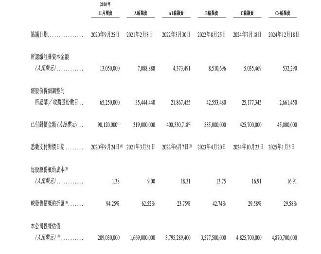 另外,值得一提的是,IPO前,公司于2020年9月至2024年12月合计完成了6轮融资,累计融资金额达18.6645亿元,最后一轮投后估值达48.7亿元。
