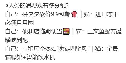 “月薪5000,给宠物花3000”、“6块钱的配送费坚决不可以!大几百的猫粮不算什么”。(猫狗:这届仆人真好PUA)