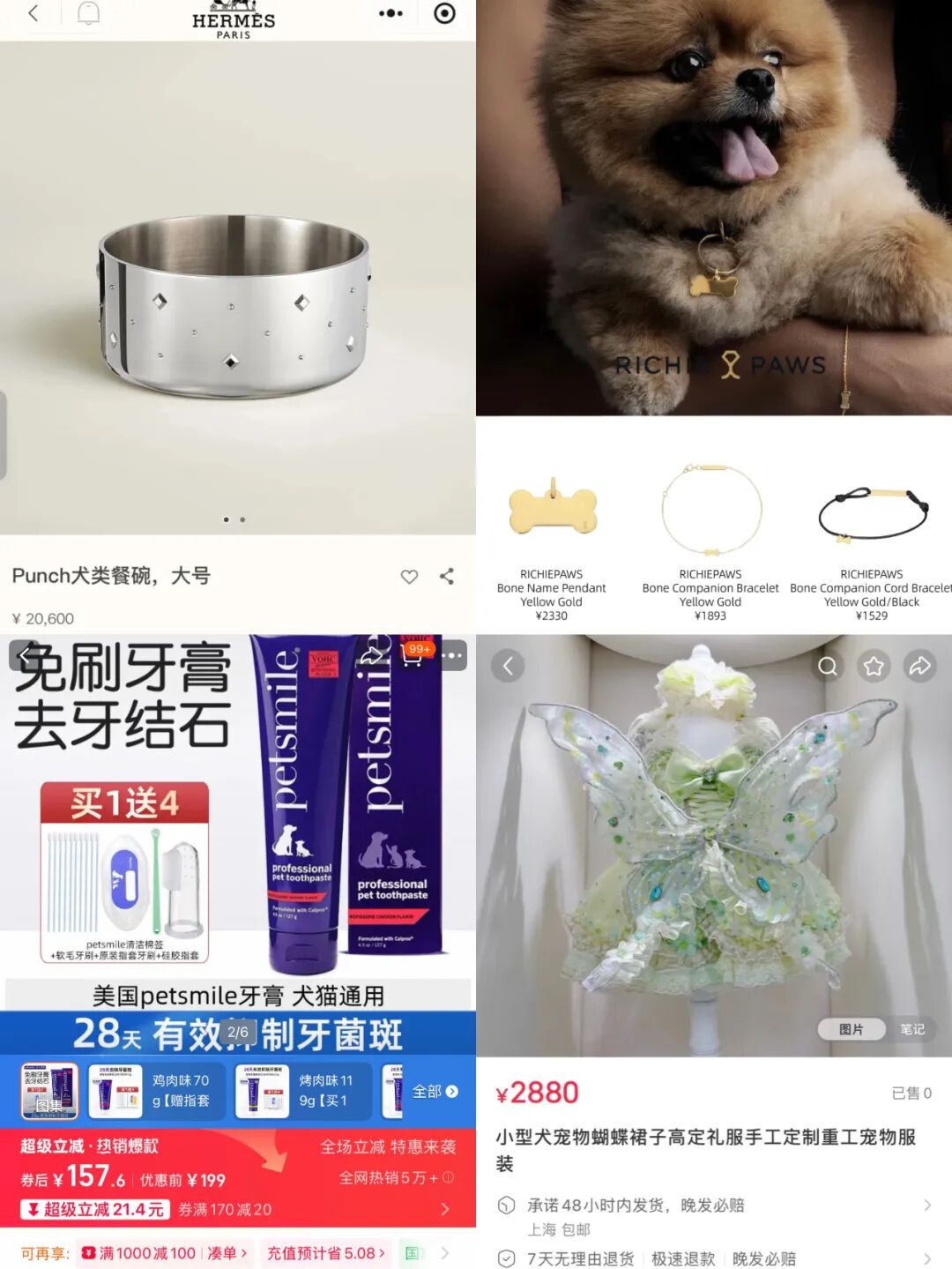 想象一下,每天醒来先用150块一套的宠物牙具刷牙,再用2万元的限量狗碗吃饭,然后戴着2000元的项链、穿着2880元的高定礼服去上幼儿园,放学去2万年费的会所健个身,再去海岛风情的疗愈店马杀鸡……网友自嘲:“按这个趋势,‘活得像条狗’以后再也不是吐槽,而是赤裸裸的显摆了。”